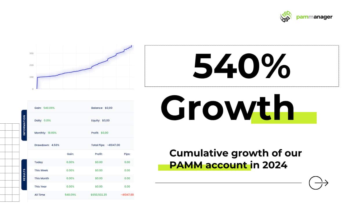 In 2024, the PAMM account managed by PAMM Manager delivered a remarkable 508% cumulative growth for over 250 investors. This success not only helped investors achieve their financial goals but also strengthened the trust in PAMM Manager’s expertise. In response to high demand from investors, a new PAMM account was launched in 2025 to continue this impressive journey.