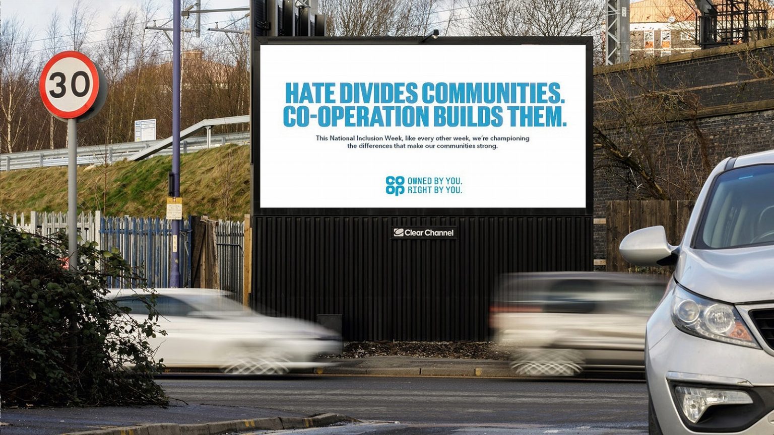 Co-op has unveiled a new nationwide campaign designed to highlight and support community cohesion and diversity, coinciding with National Inclusion Week. The initiative involves substantial outdoor advertising with manifesto-style banners in Manchester and Liverpool, aiming to capture the public’s attention with the slogan: “Hate Divides Communities. Co-operation builds them.” This slogan encapsulates Co-op’s dedication to reinforcing cooperative values and the importance of community support.