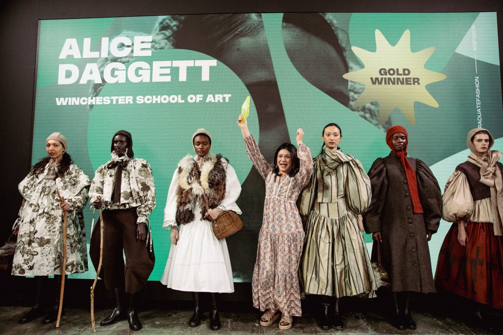 - Alice Daggett from Winchester School of Art secured the prestigious GFW24 Gold Catwalk Award, drawing inspiration from her Northern England roots.