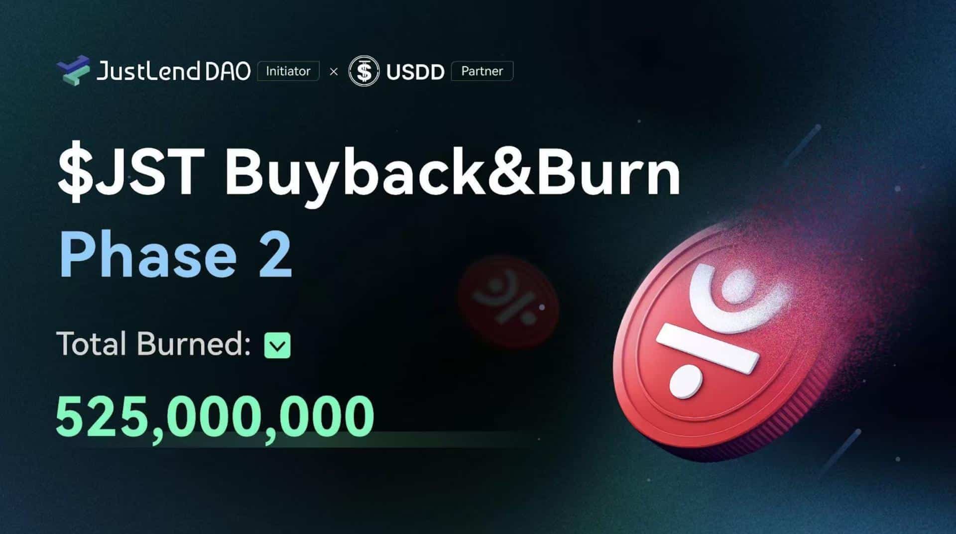 JustLend DAO, TRON’s premier decentralized lending platform, announced the completion of a second buyback and burn of its JST token, permanently removing 525 million tokens, representing an estimated $21 million USD in value, from circulation. The burn represents approximately 5.3% of the total supply, and brings the cumulative reduction to roughly 1.08 billion JST, or 10.96% of total supply, achieved in less than three months. The successful buyback and burn reflect JustLend DAO’s ongoing commitment to maintaining a deflationary token supply.