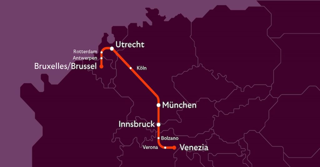 - The train will traverse through notable cities and ski gateways, including Munich, Innsbruck, and Bolzano.
