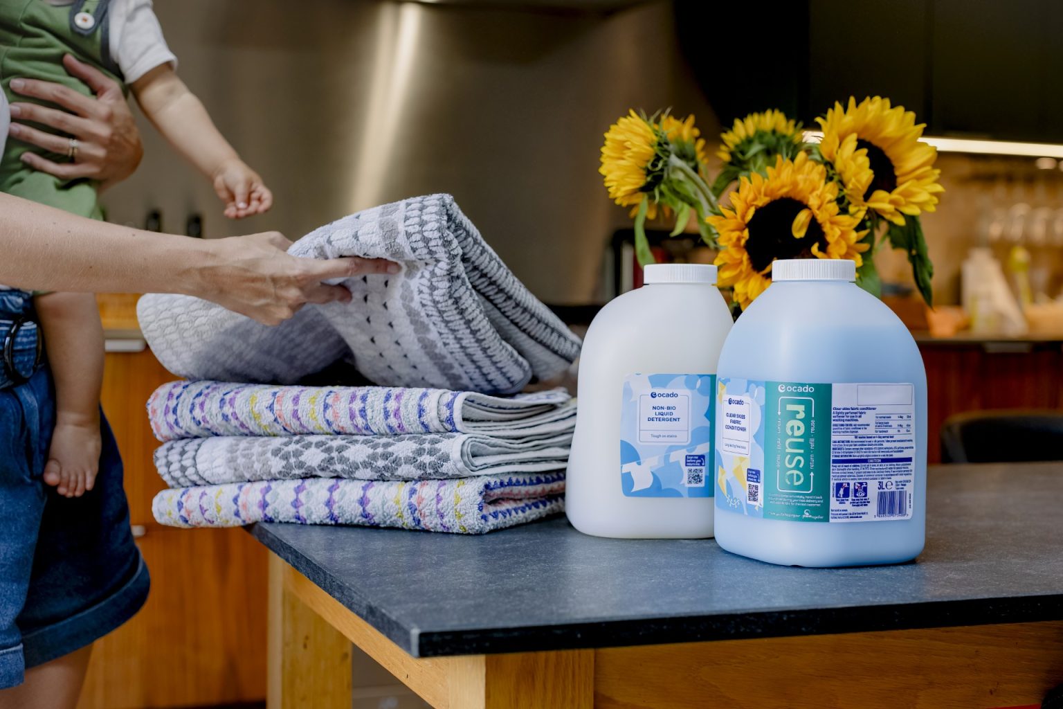- Starting 28 October, Ocado offers Reuse Non-Bio Liquid Detergent and Reuse Clear Skies Fabric Conditioner in 2.7L reusable packaging.