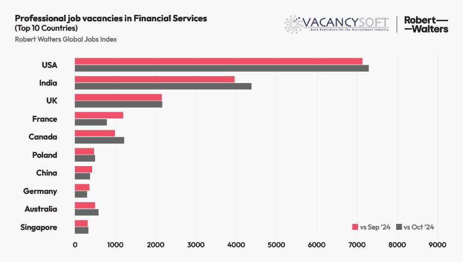 - Financial services reported a ‘muted’ October for job growth due to US Election and UK Budget.