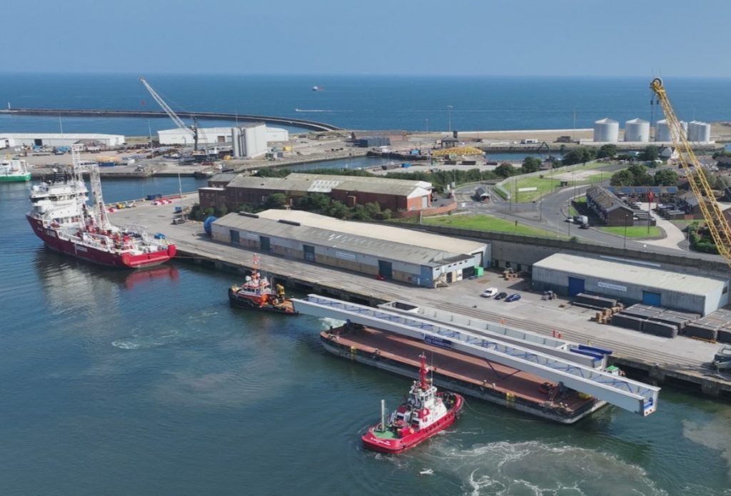 The £44 million New Wear Footbridge in Sunderland is advancing as the final steel sections arrive from Belgium, arriving at the Port of Sunderland. These segments, measuring 63m and 105m in length, began their journey from Ghent, marking another pivotal moment for Sunderland’s infrastructure as part of the city’s ambitious Riverside regeneration project.