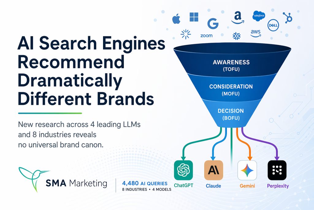 SMA Marketing, an AI-first search marketing agency, today published original research testing whether AI-powered search engines genuinely converge on a narrow set of brand recommendations as users move toward purchase decisions. The study, “Testing the ‘Dark AI’ Theory: Does Brand Convergence Actually Drive AEO Influence?”, replicates and expands on a January 2026 preliminary study by Demand Genius across four leading large language models and eight industry verticals.