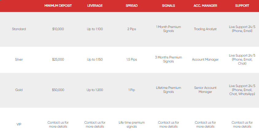 Each account type ensures that traders can select a plan aligning with their trading goals, experience level, and investment capacity.